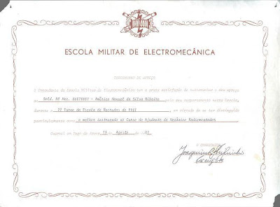 - Curso de Ajudante Mecânico Rádiomontador (Escola Militar de Electromecánica de Paço D´Arcos)